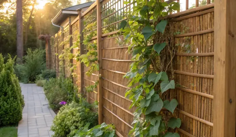 Bamboo Privacy Screen with Climbing Plants