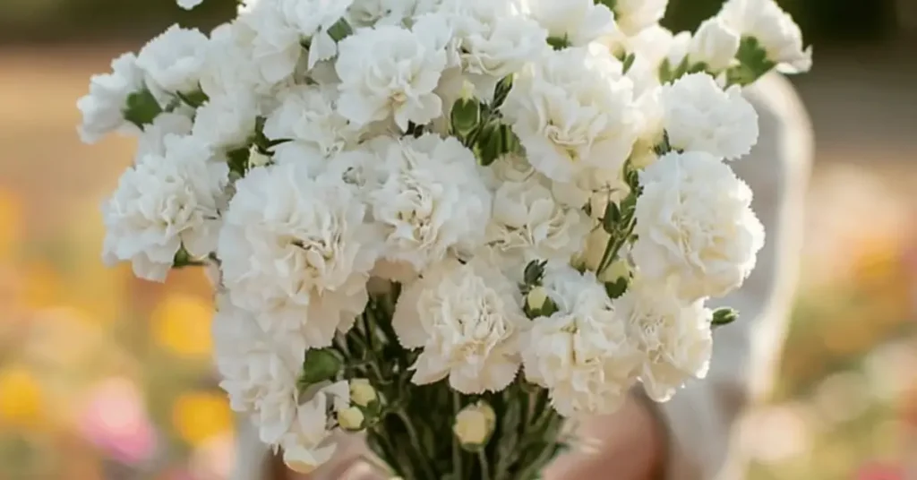 Sometimes, you don’t want something that looks too stiff or fancy. A big, fluffy bunch of white carnations feels very “human.” They are one of the most traditional flowers to give because they stay fresh for a long time, standing strong even when everything else starts to fade.