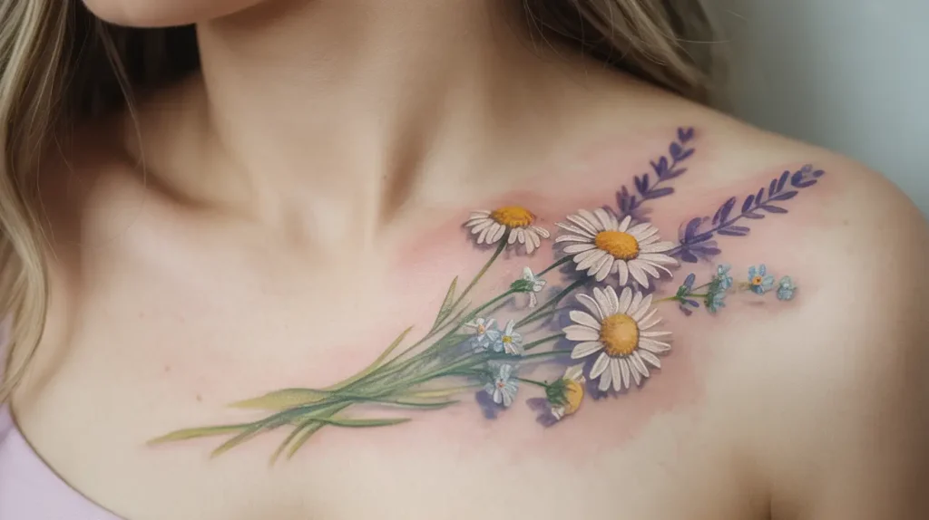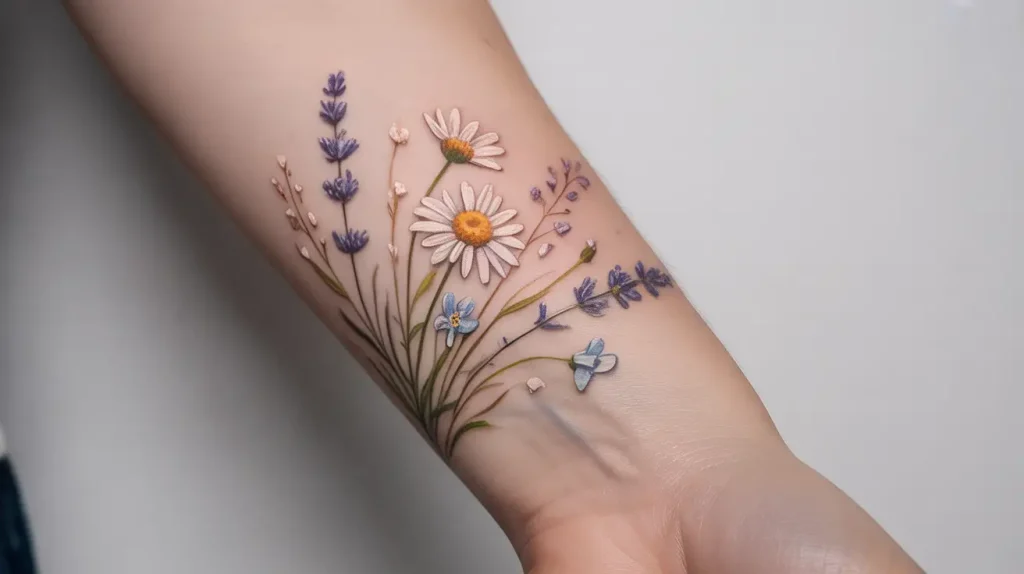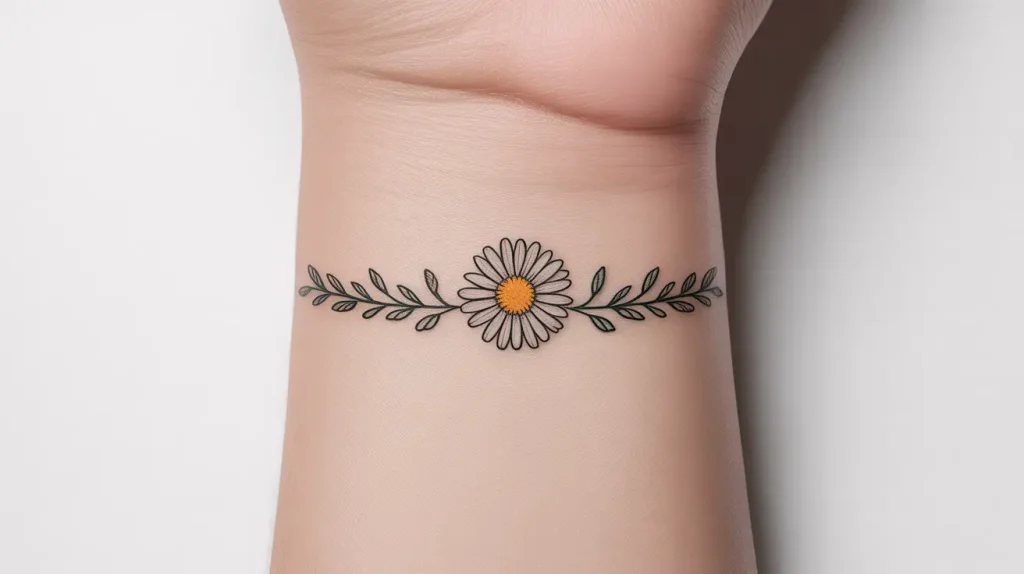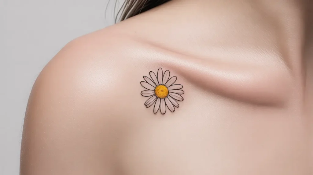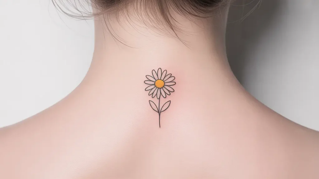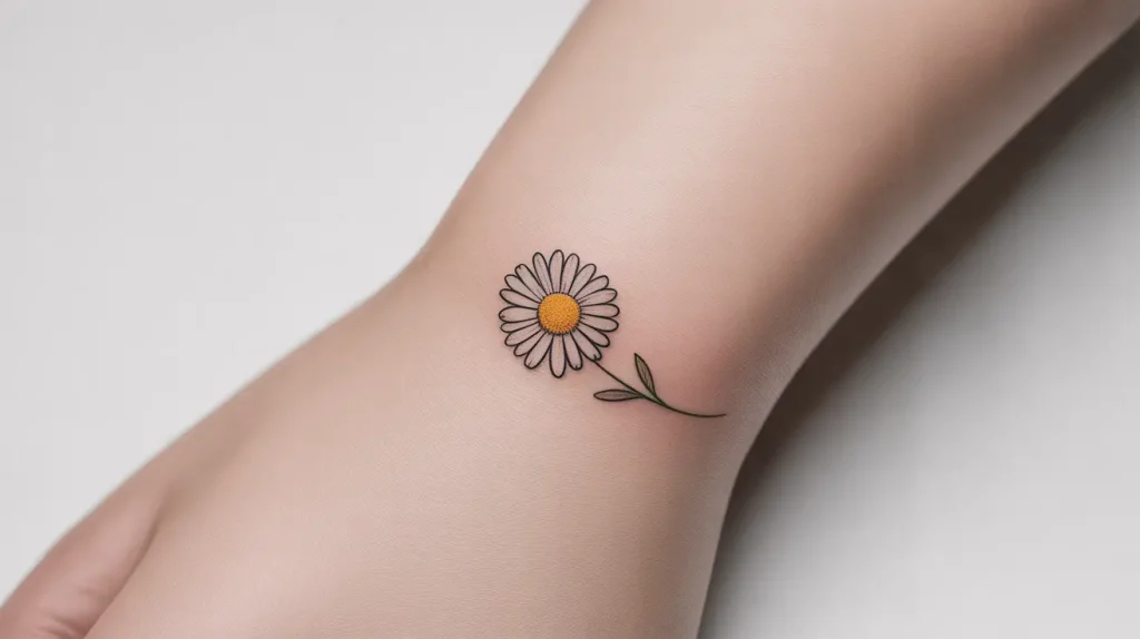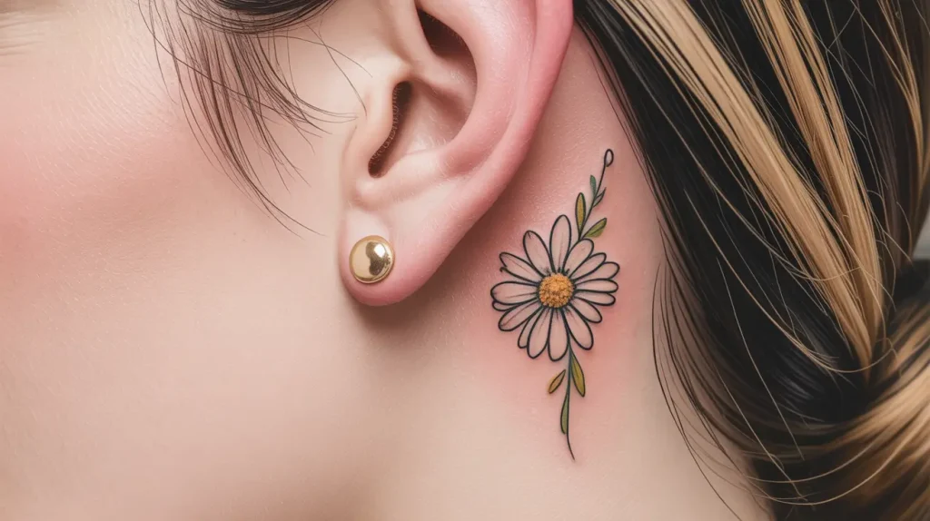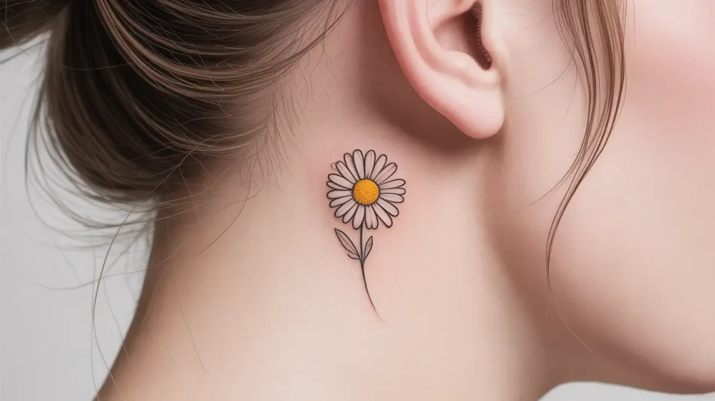 Daisies feel innocent and cheerful. A small daisy on the ankle, wrist and below the ear gives a lighthearted look.