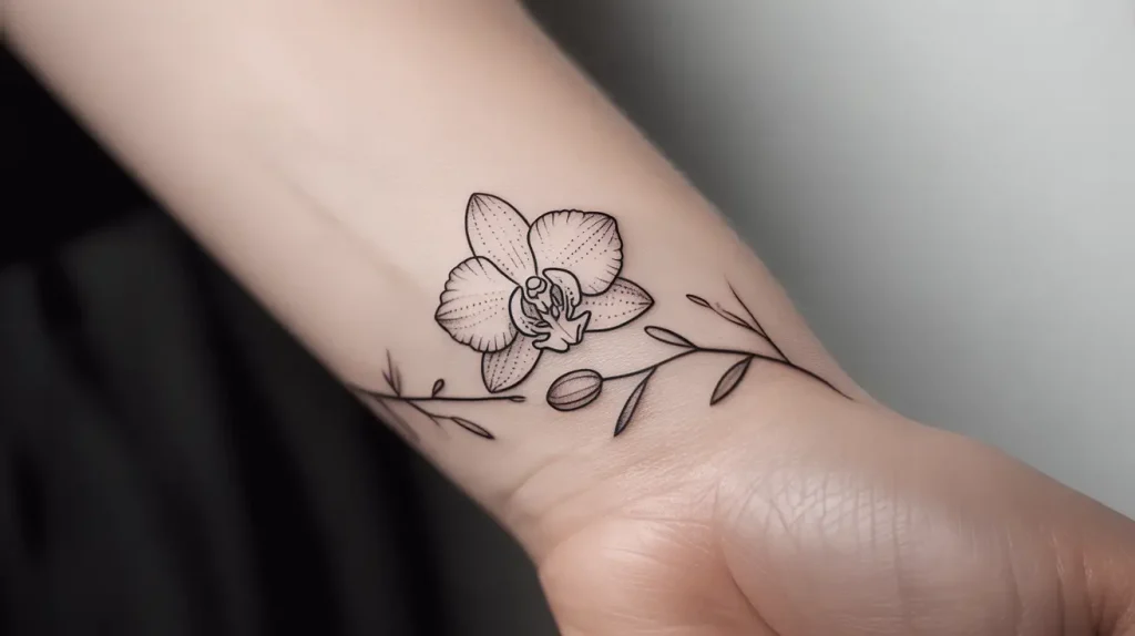 A micro orchid tattoo looks delicate and slightly exotic. Even a tiny design shows beautiful petal shape.