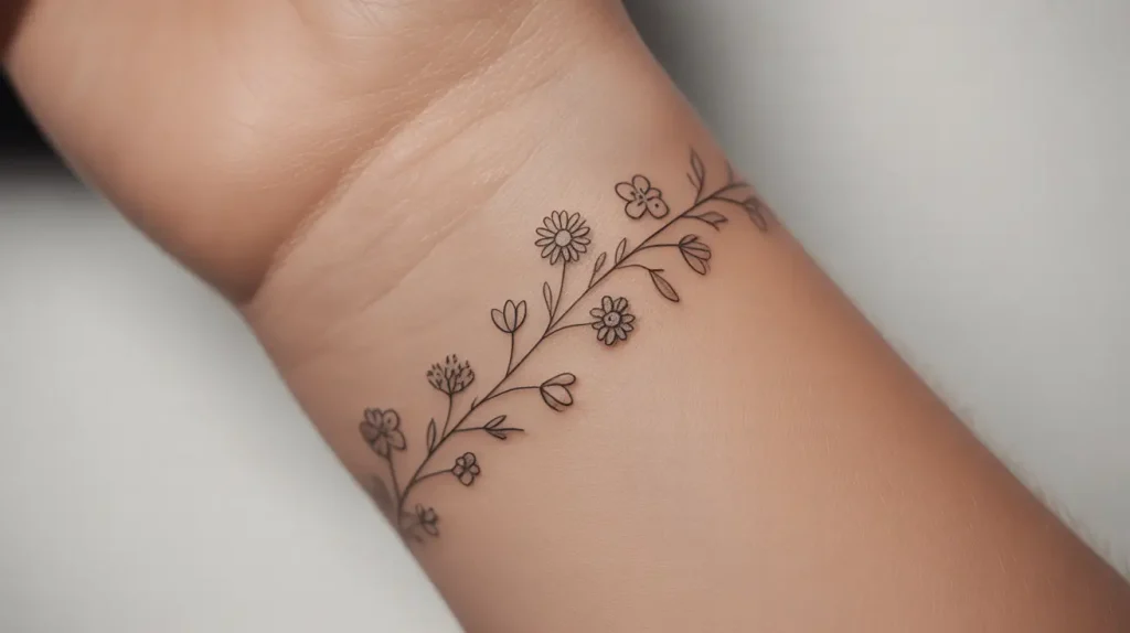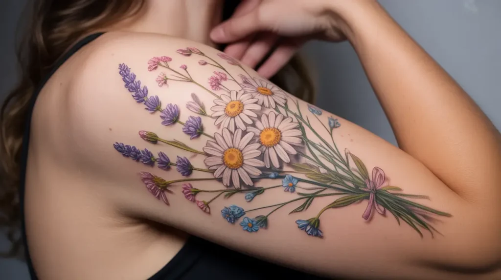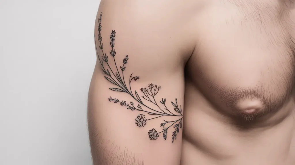 Not all men prefer heavy shading. A simple wildflower line tattoo looks modern and subtle.