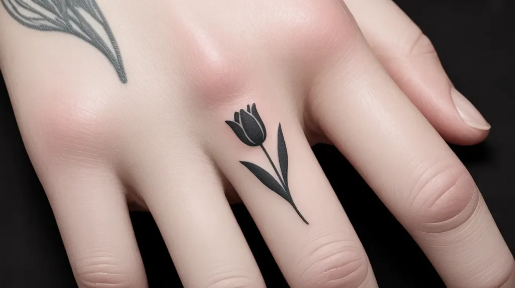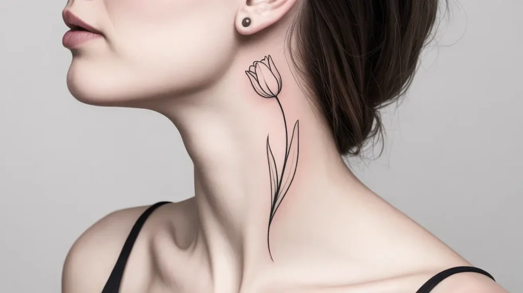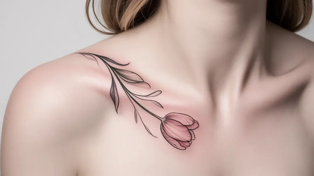 This suits you if you like minimal tattoos. A tulip resting along the collarbone feels soft and modern. Its smooth petal shape creates a clean silhouette.