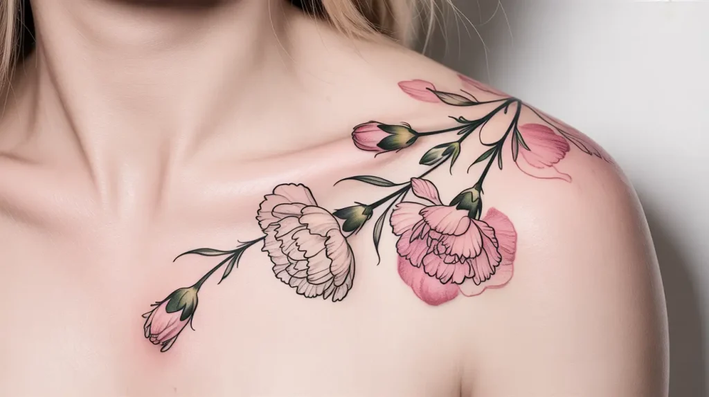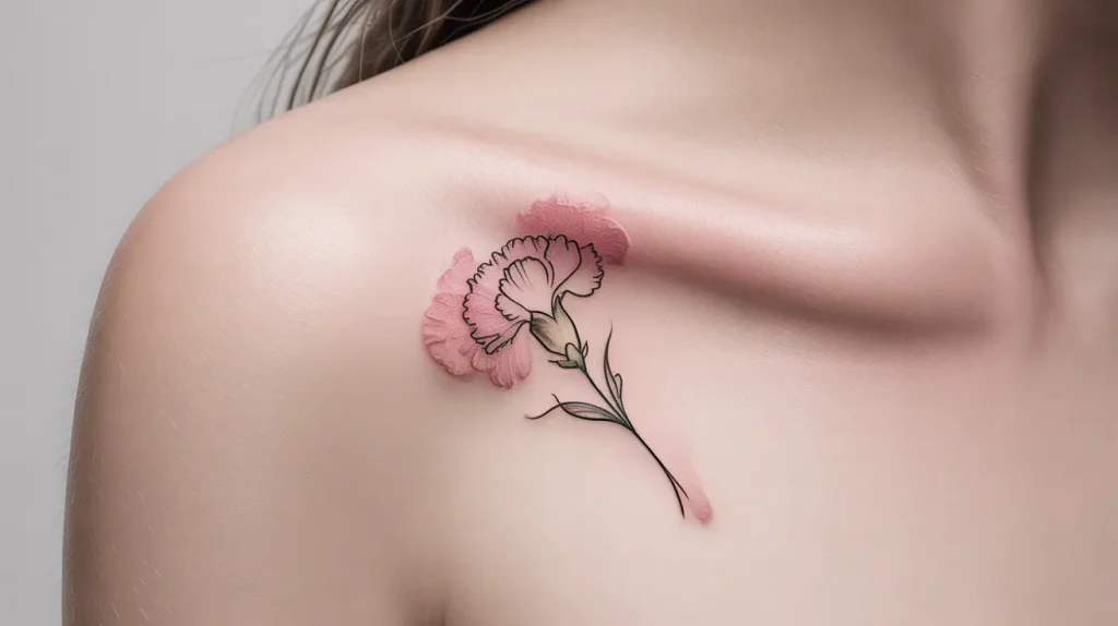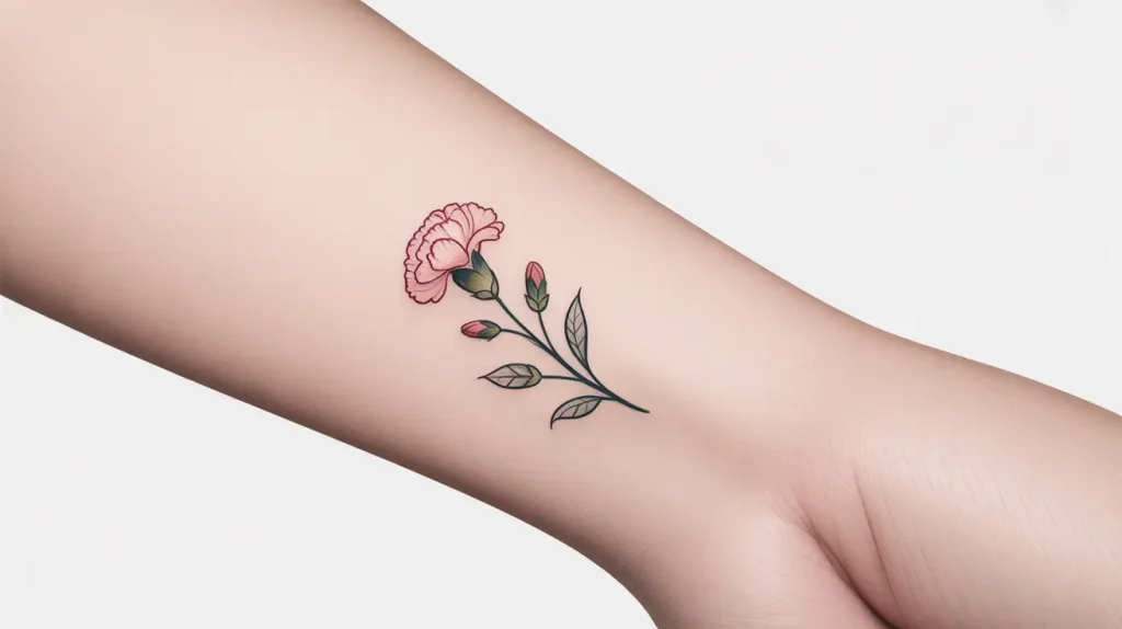 A carnation tattoo, represents love, fascination, admiration and gratitude. A small carnation on the wrist looks classic. You can try on collarbone area and shoulder area for bold look.