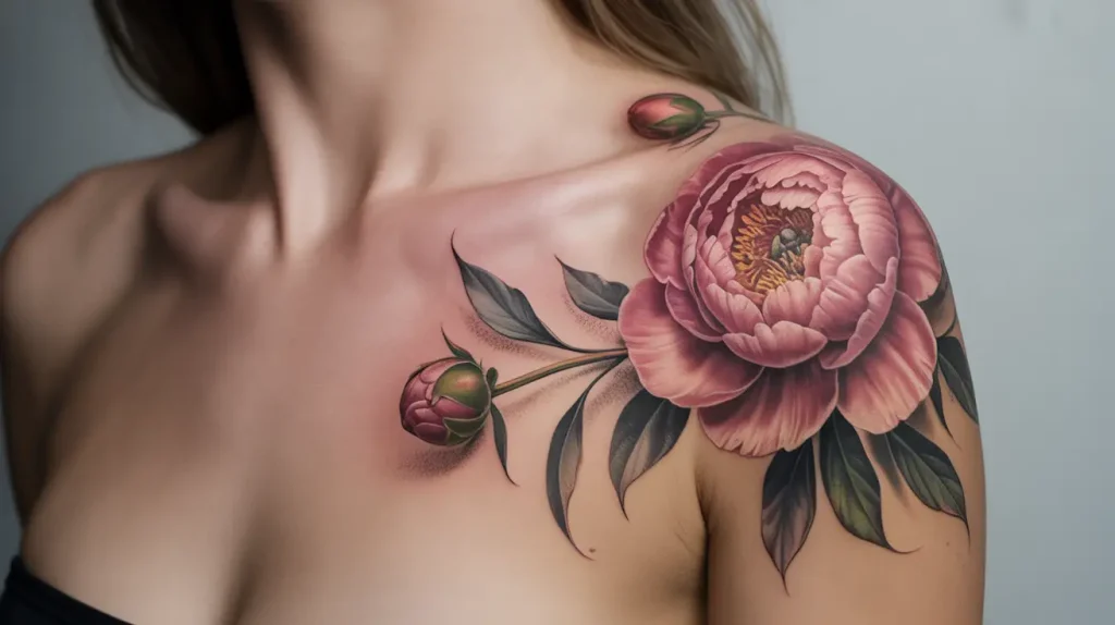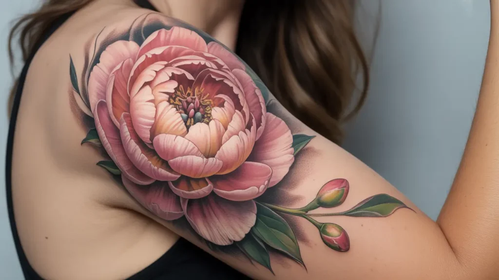 A peony tattoo on the upper arm feels powerful. The petals create a full, lush look that stands out without looking aggressive. You get elegance with volume.