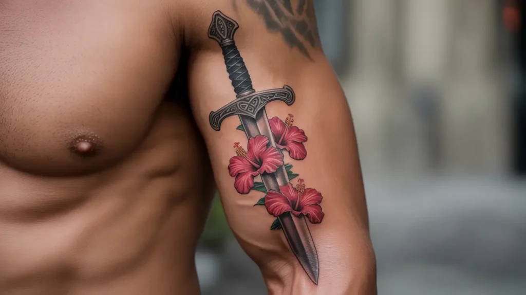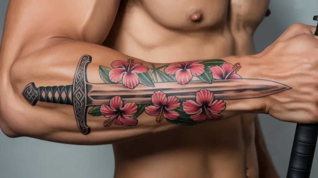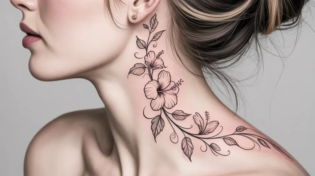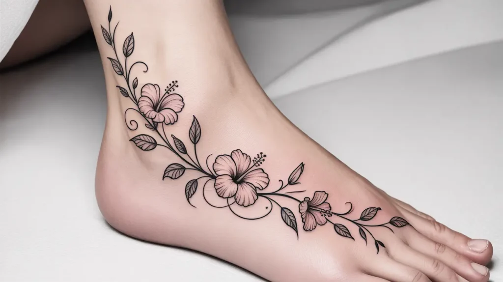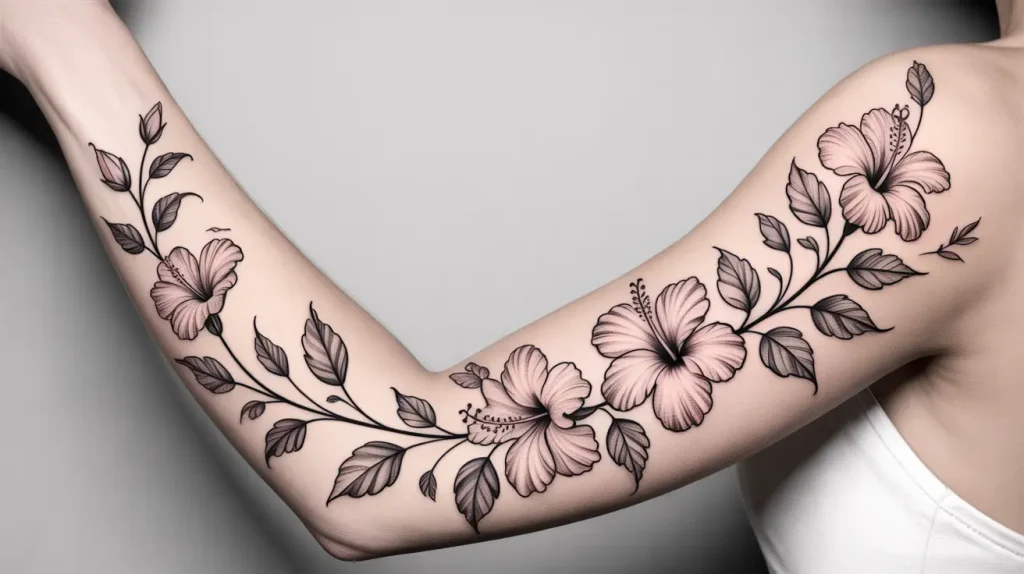 A hibiscus vine wrapping around the arm or leg or ankle symbolizes growth and resilience. It creates a flowing, organic look that follows body movement beautifully.