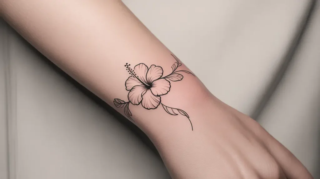 A Single Minimalist Hibiscus Bloom Tattoo on the Wrist