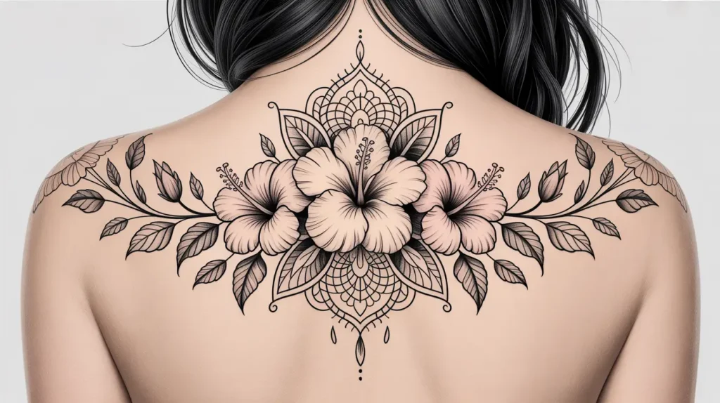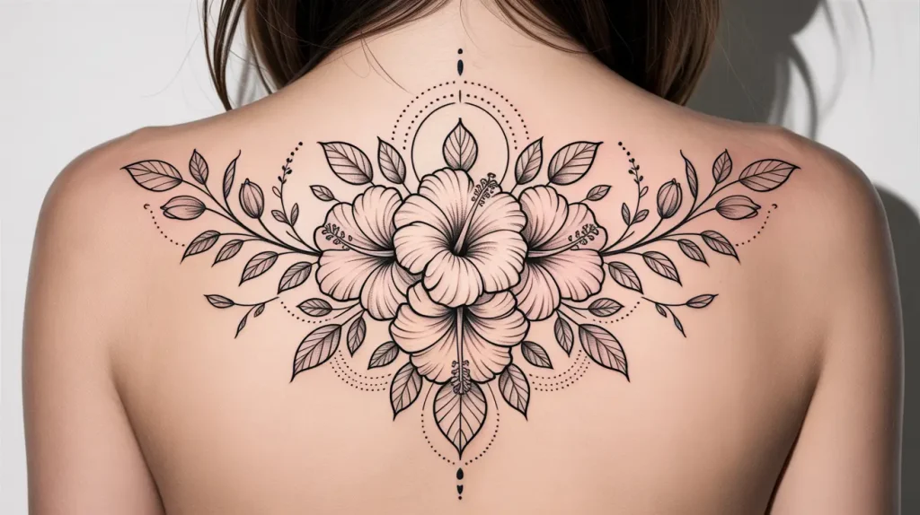 This design blends two powerful symbols—hibiscus for beauty and butterfly for transformation. It’s a popular choice among women who want a tattoo representing growth, healing, or a new life chapter.