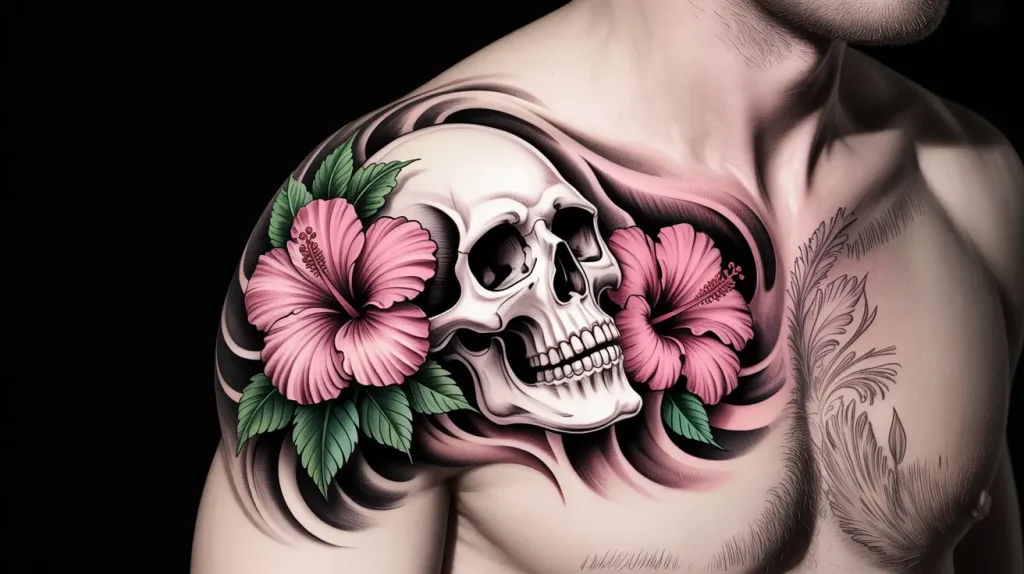 A red hibiscus tattoo on the shoulder is a timeless choice that symbolizes love, passion, and confidence. The shoulder placement allows the flower to flow naturally with the body, making it both sensual and elegant. This design works beautifully with soft shading or watercolor effects.