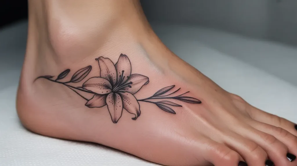 An ankle lily tattoo looks graceful and feminine. It complements both casual and elegant fashion styles.