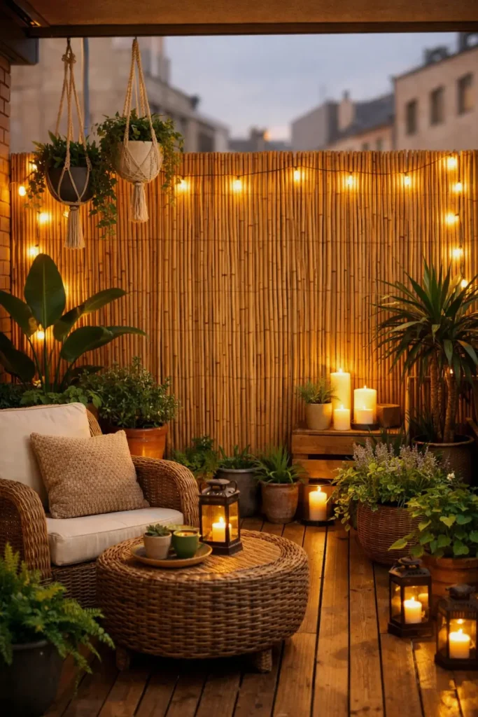 In short: bamboo screens + a few fairy lights = a bright, private, and happy balcony that actually feels like your little outdoor room.