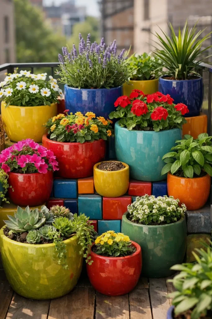 Colorful Ceramic Pots for Small Balcony Garden