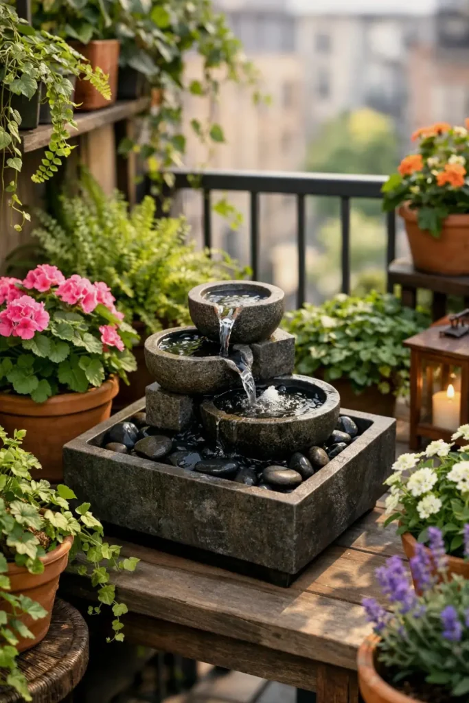 Ever notice how your balcony can feel noisy and restless — traffic humming, neighbors talking, wind rattling things? Just add a little water, and the whole mood changes in an instant.