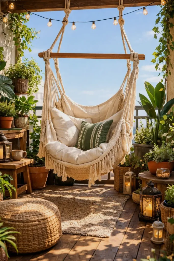 Cozy Hammock Chair on Small Balcony Garden