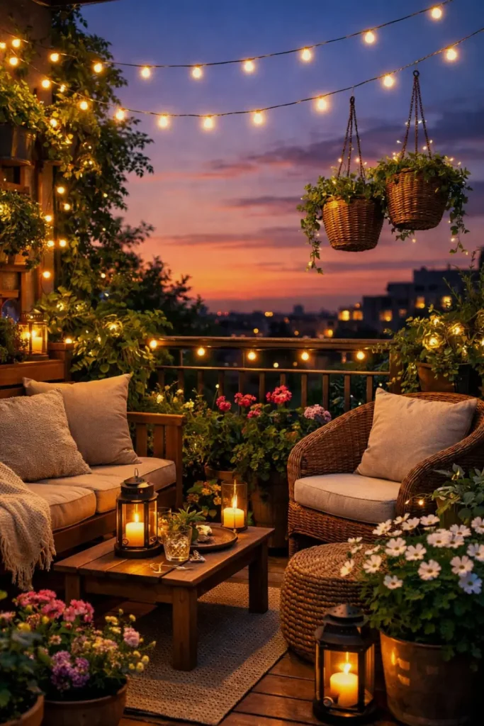 Solar fairy lights are one of the easiest ways to make even the smallest balcony feel special and full of charm. Charge free, shine long, and cost almost nothing to run. Just hang them and watch the magic happen.