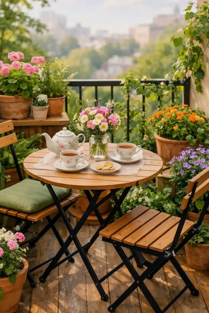 Tea Party Setup on Small Balcony Garden